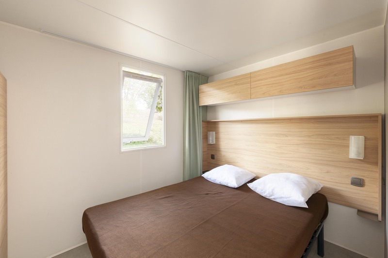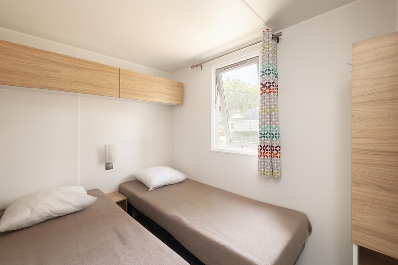 Coin nuit : une chambre avec 1 lit double, une chambre avec 2 lits simples côte à côte, une chambre avec 3 lits simples dont 1 transversal, oreillers et couvertures fournis.