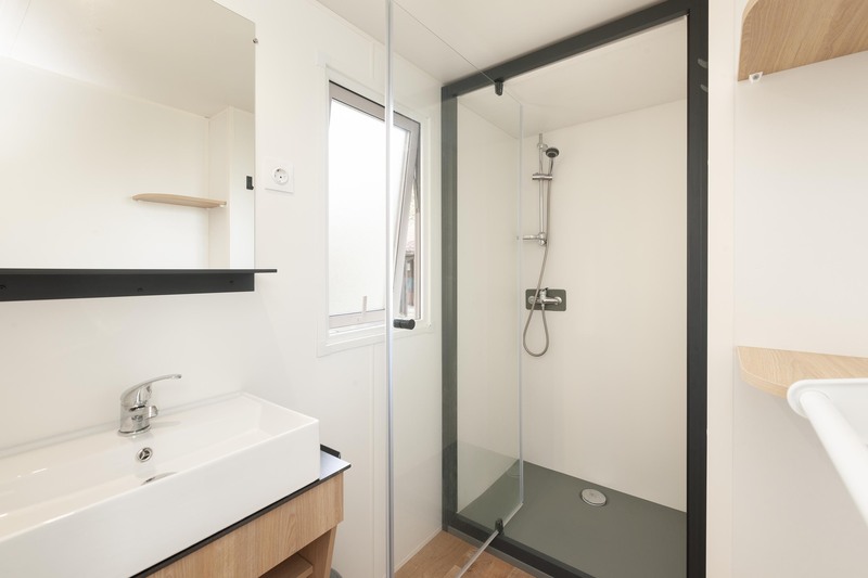 Sanitaire : salle d’eau avec douche et lavabo. WC séparés.