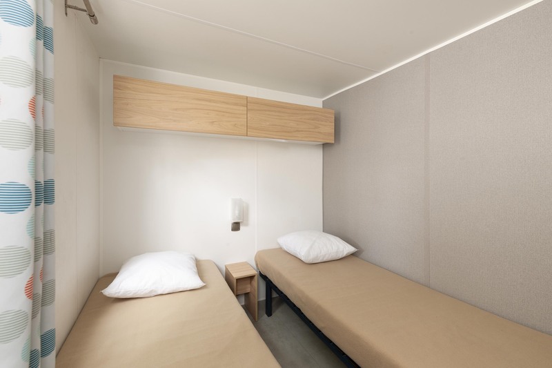 Coin nuit : une chambre avec 1 lit double, une chambre avec 2 lits simples côte à côte, une chambre avec 3 lits simples dont 1 transversal, une banquette convertible pour 1 personne dans le séjour, oreillers et couvertures fournis.