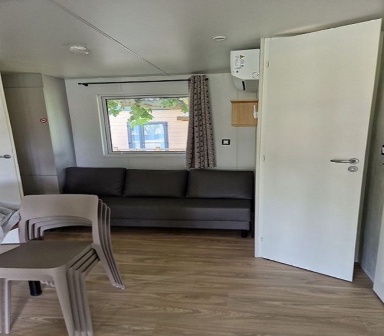 Séjour/ cuisine: Coin salon-séjour , cuisine équipée (évier, feux gaz, réfrigérateur, cafetière, micro-ondes, lave-vaisselle, vaisselle), chauffage, climatisation et télévision.